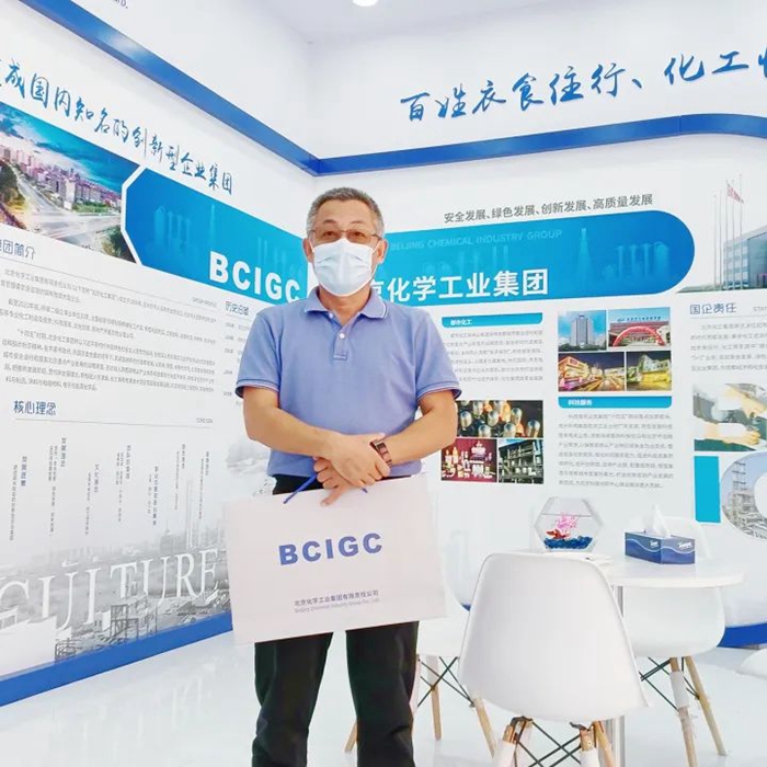 有着化工情结的观展人员在参观集团展位后欣然留影。