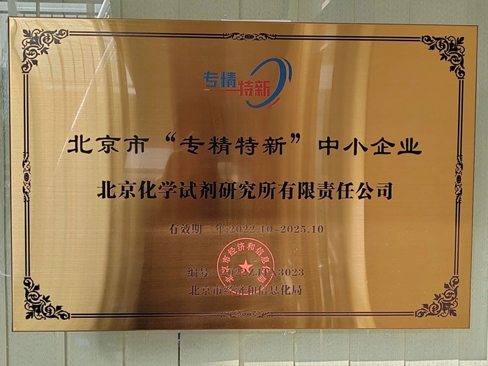 2021年至2024年,试剂所共取得发明专利授权7项,实用新型专利11项,其中2024年新授权发明专利2项,另有3项发明专利正在评审中。2022年10月,是值得试剂所干部职工铭记的一个金秋。在这天朗气清的十月,试剂所被北京市经济和信息化局授予“专精特新”中小企业。这一有着强烈时代特色,代表着新质生产力发展方向的资质,是对这家有着60余年发展历史的科研型企业,以科技为引领,深耕试剂产业链的最大肯定和褒奖。